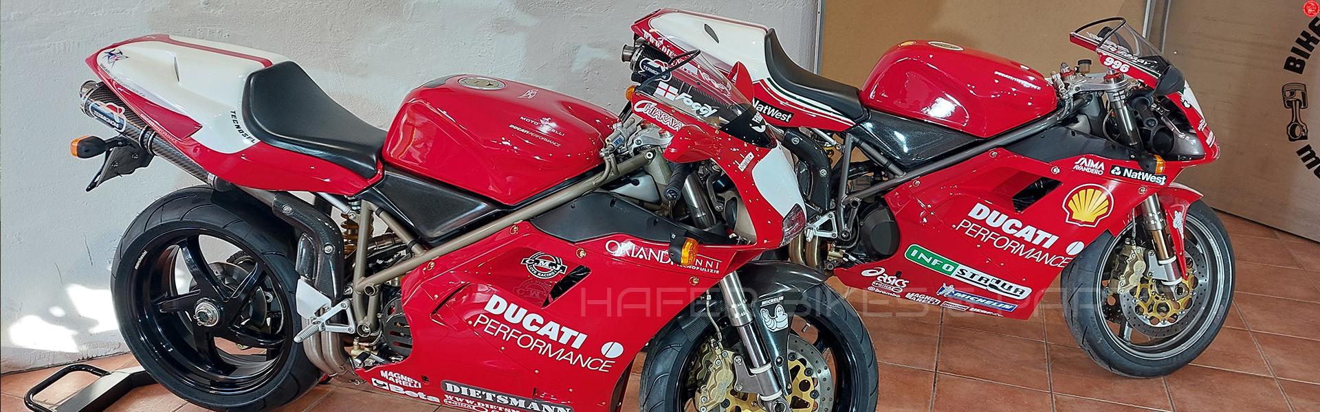 Das Thema Motorrad ist nicht nur unser Leben, sondern seit Jahrzehnten eine Passion für uns. Wir handeln alles an Motorrädern, was uns gefällt. Auch Ersatzteile und Replikateile finden sie bei uns. Neuteile und eigene Hafer-Teile direkt hier im SHOP, aber auch viele seltene Gebrauchtteile im Ebay SHOP. Nutzen Sie vor dem Kauf über Ebay den direkten Kontakt zu uns für einen besseren Preis. Spezialisiert sind wir auf limitierte Sondermodelle z.B. von Ducati. Hierbei hat es uns grade die 916 Massimo Tamburini - Baureihe sehr angetan. Aber natürlich auch alle anderen Sammlerbikes. Wir arbeiten hier mit exklusiven Sammlern europaweit zusammen, die uns die Möglichkeiten bieten solche Traumbikes zu erwerben. Sie suchen ein spezielles Model egal von welcher Marke. Fragen sie gerne an. Wir haben immer Bikes im Vorlauf. Sie möchten Ihr Motorrad auch verkaufen? Kontaktieren Sie uns gerne gleich mit Bildern und Daten per WhatsApp / Signal auf 0049 (0)151 18955531 oder per E-Mail. Sie können uns natürlich auch gleich anrufen unter derselben Nummer.